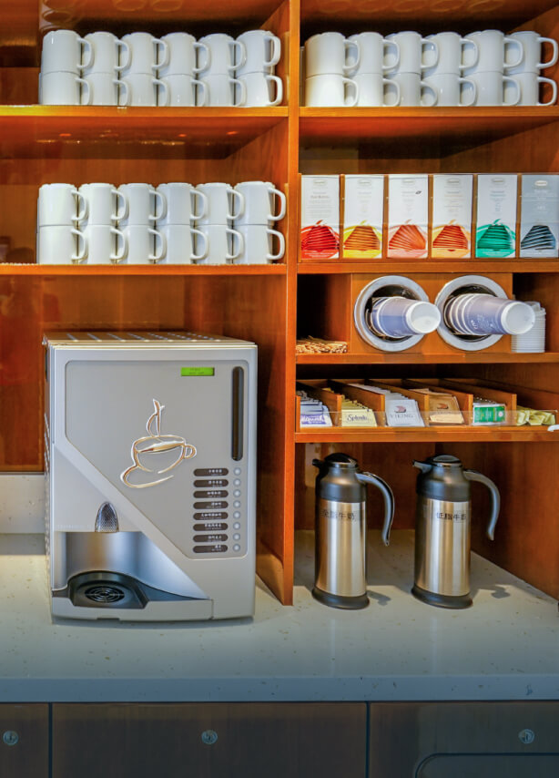 在正餐之间嘴馋了,或在上岸游览前来不及喝一杯咖啡,怎么办?位于上层甲板的自助热饮机24小时为您开放——带有中文标识,操作简单,无论您想喝卡布奇诺、摩卡、拿铁、黑咖啡、热巧克力还是茶,都能一键搞定。我们还备了纸杯和一次性杯盖,方便您携带您的热饮下船。此外,这里从早餐到晚餐前时段还提供简单的小点心。