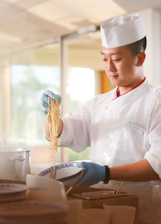 想在早晨来一碗热乎乎的鸡汤面,或者在深夜吃一碗喷香诱人的酸辣粉?位于观景廊的面吧每天从清晨6点起开放18小时,为您提供招牌担担面和每日轮换的一款现煮中式面条,满足您思乡的胃。坐在户外吃着担担面,眼前的沿河欧洲美景、嘴里的熟悉香辣味道,定会留下难忘的回忆。这里也将提供具有古早味的中华点心与小食,给您带来额外的惊喜。