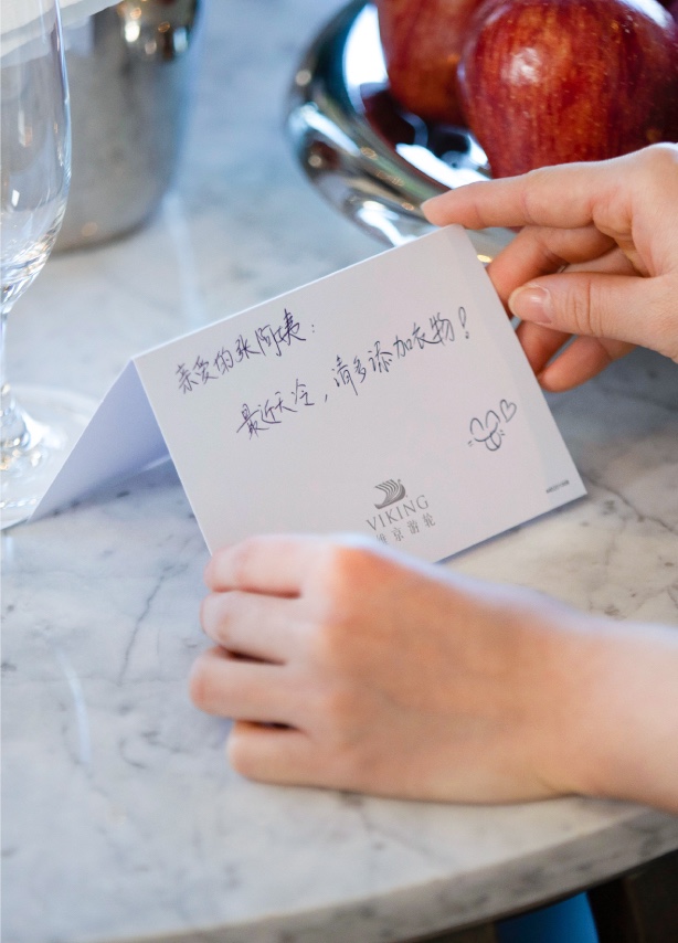 无论是冬天给您递上的热饮,还是夏天为您端上的凉毛巾,希望您每次回船都感受到我们欢迎您“回家”的用心。
