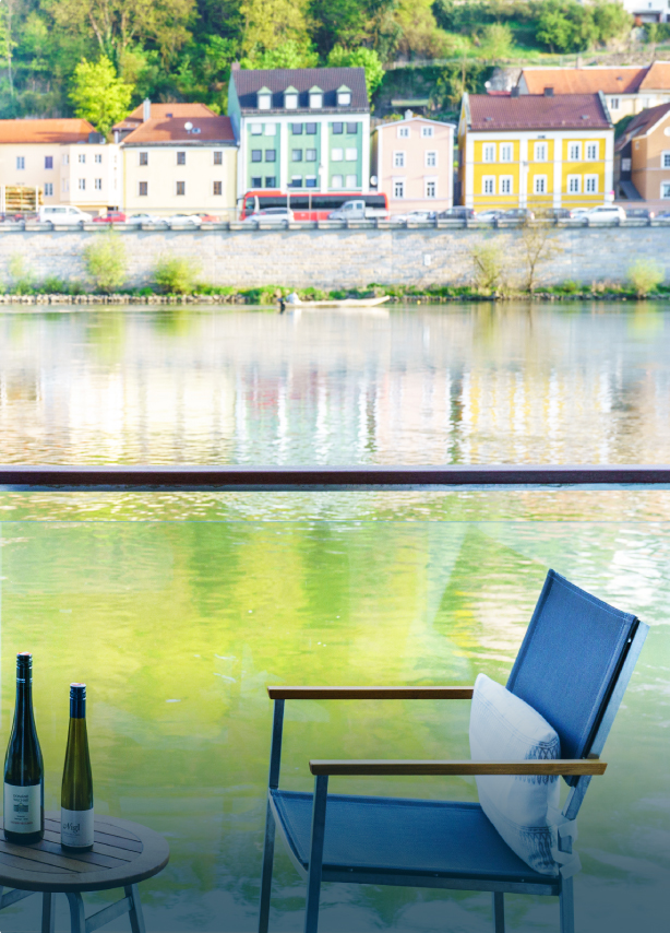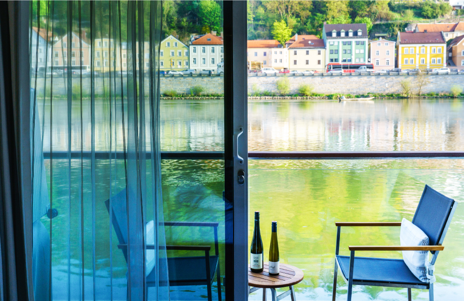 维京游轮上更是不设内舱房,让您无论是清晨抑或傍晚,休憩在阳光甲板上抑或房间内,都有秀丽河景相伴。