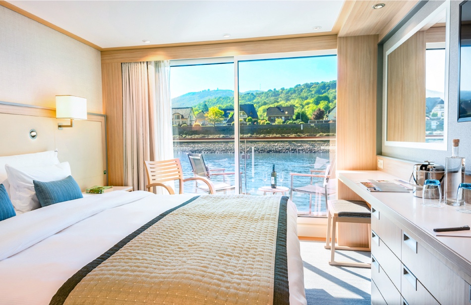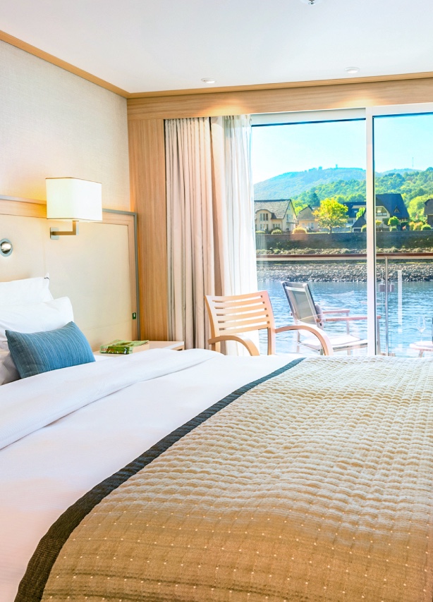 维京长船上独有获取了设计专利的“非居中”游轮走廊配置,成就了我们能够提供更多、更宽敞房型的特征。宾客们因此有了更多选择——从舒适的法式露台及阳台客房到豪华的套房,一共五种房型,而且无一内舱房。